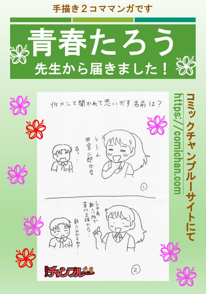 - 2026年4月3日:手描き2コママンガです 青春たろう先生から届きました!