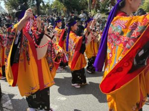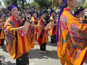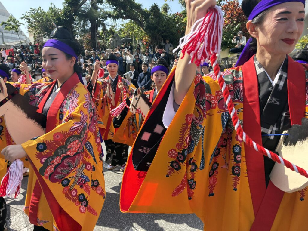 そこで、意外に根深い誤解がありますが、現在、じゅり馬パレードの女性には「本職」の方はおられません。みなさん琉球舞踊家と一般公募で練習された方々です。念の為に言っておきます。まあ、一般公募に本職さんが混じっているかもしれませんが。